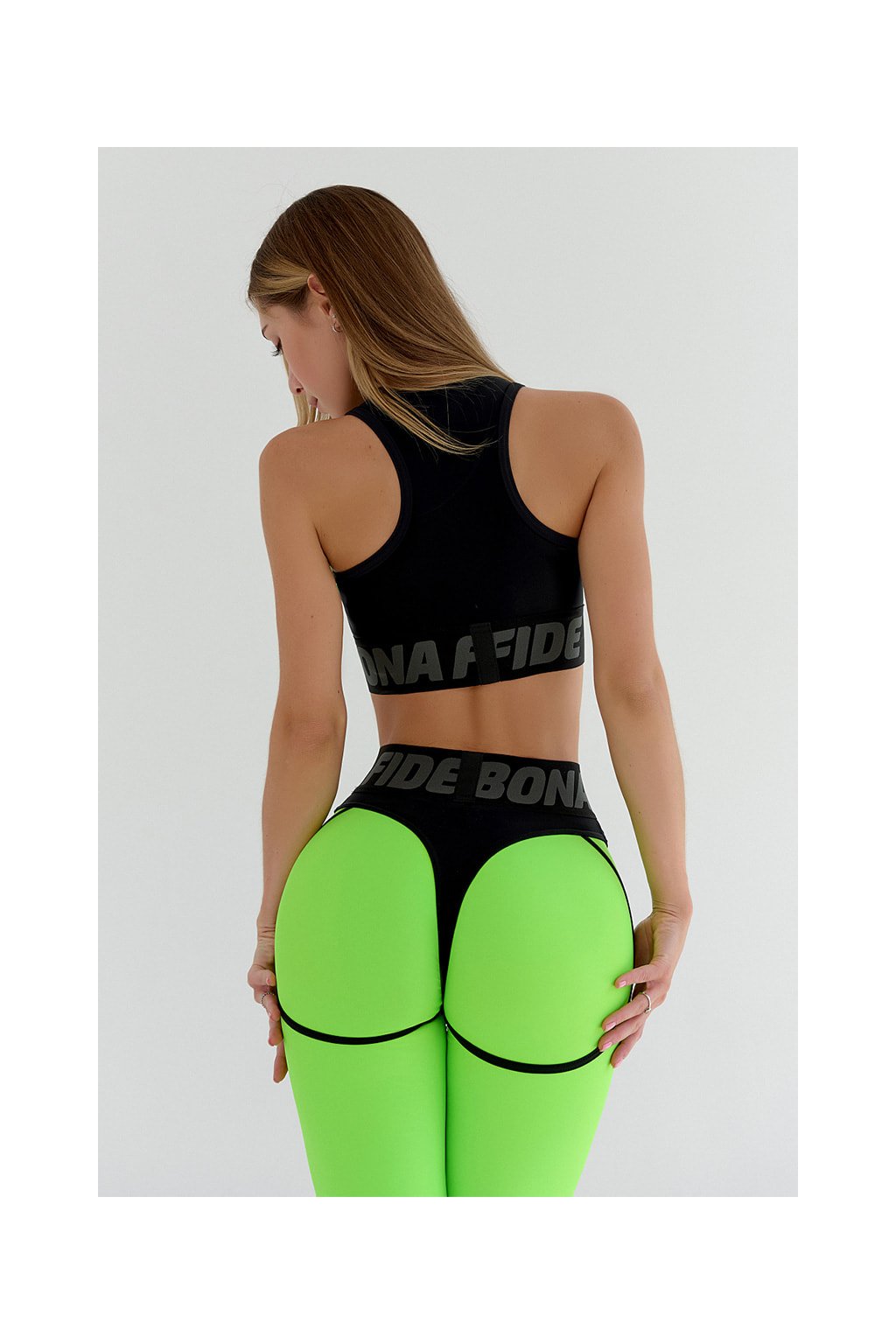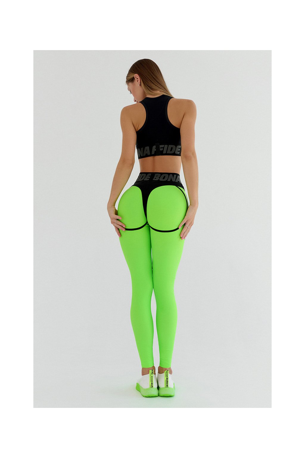 Fenomenálne Fitness Legíny Bona Fide vo výraznej neónovej zelenej farbe. Extra tvarujúce so sexy inzertami v štýle "Tanga". Špeciálny strih a kontúring urobí z každého zadku brutálne spevnený a atraktívny zadoček.