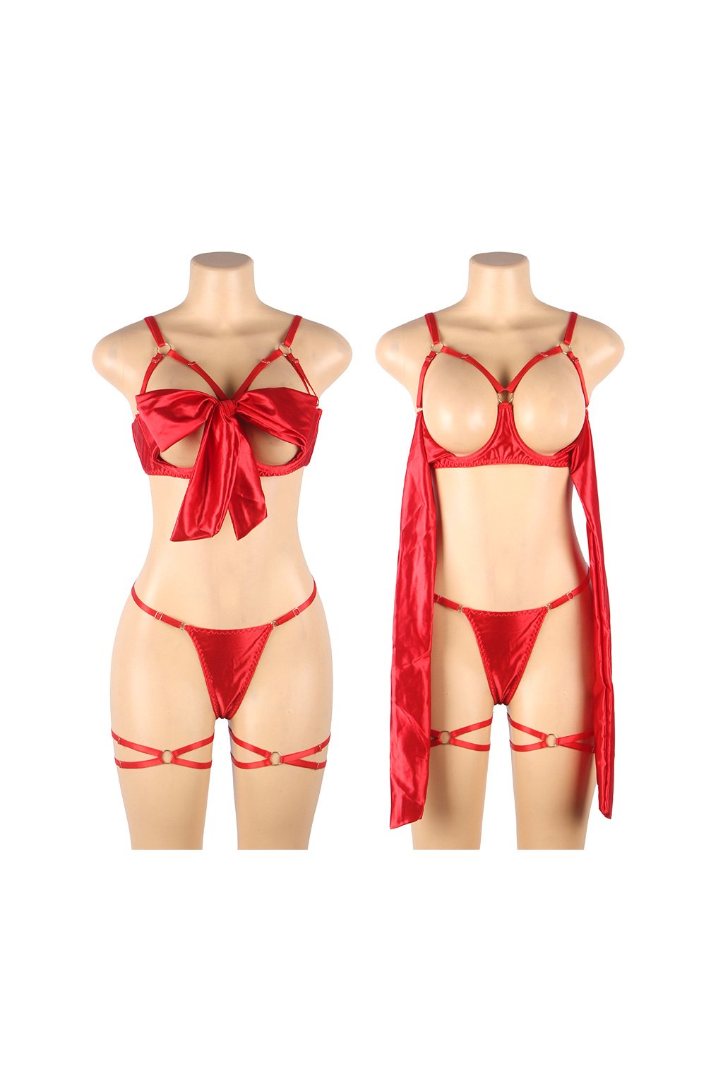 Sexy set spodného prádla s veľkou mašľou v sýtej červenej farbe...