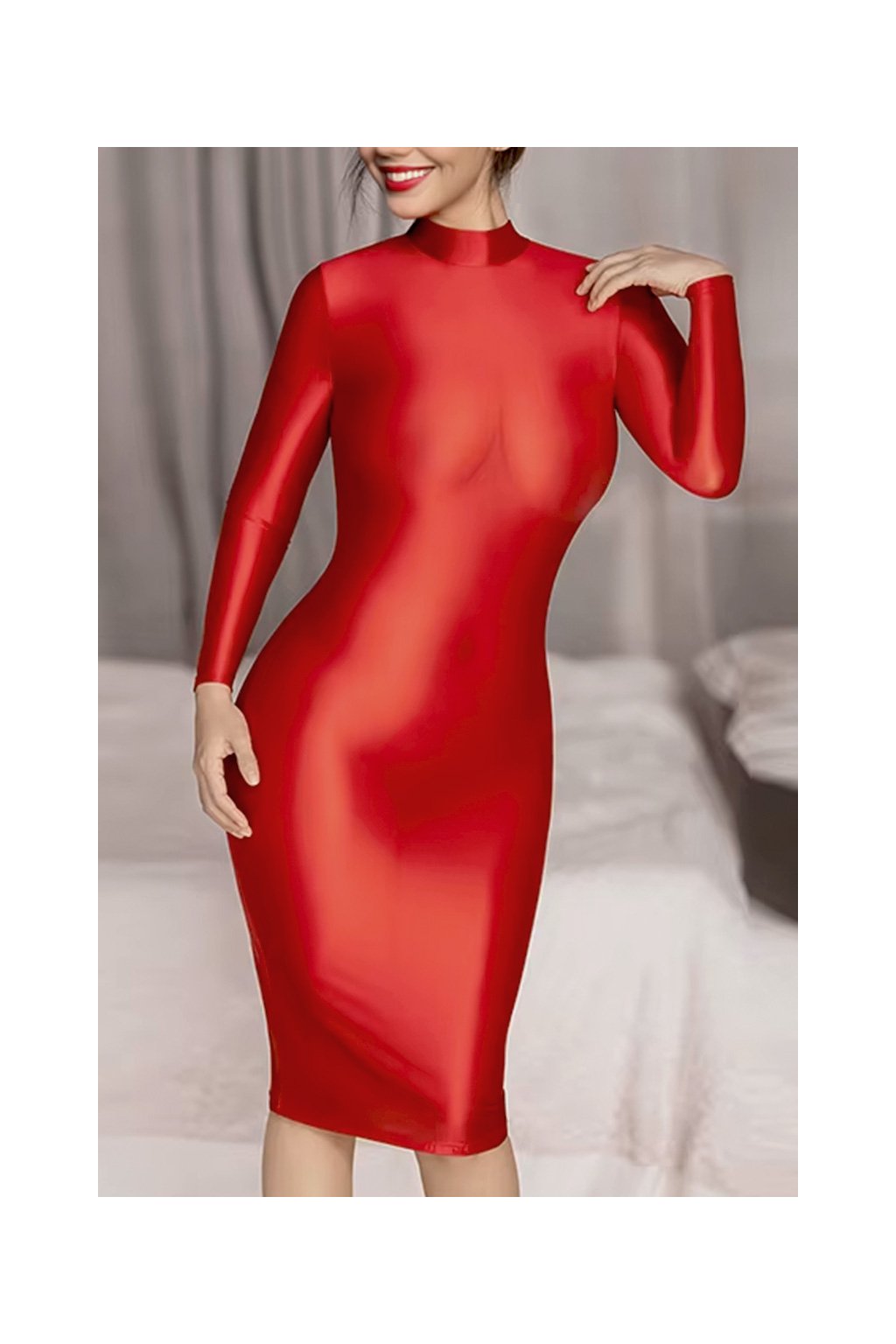Sexy nylonové púzdrové šaty vo vysokom lesku...
