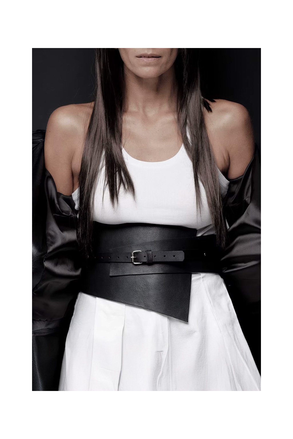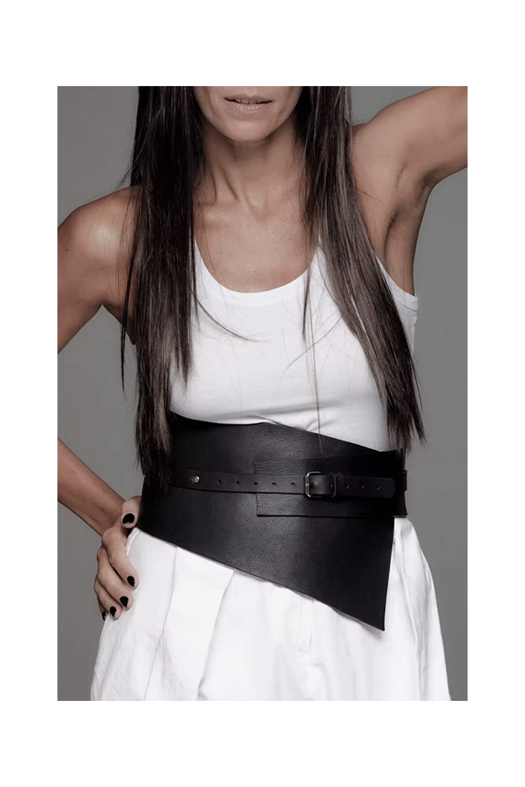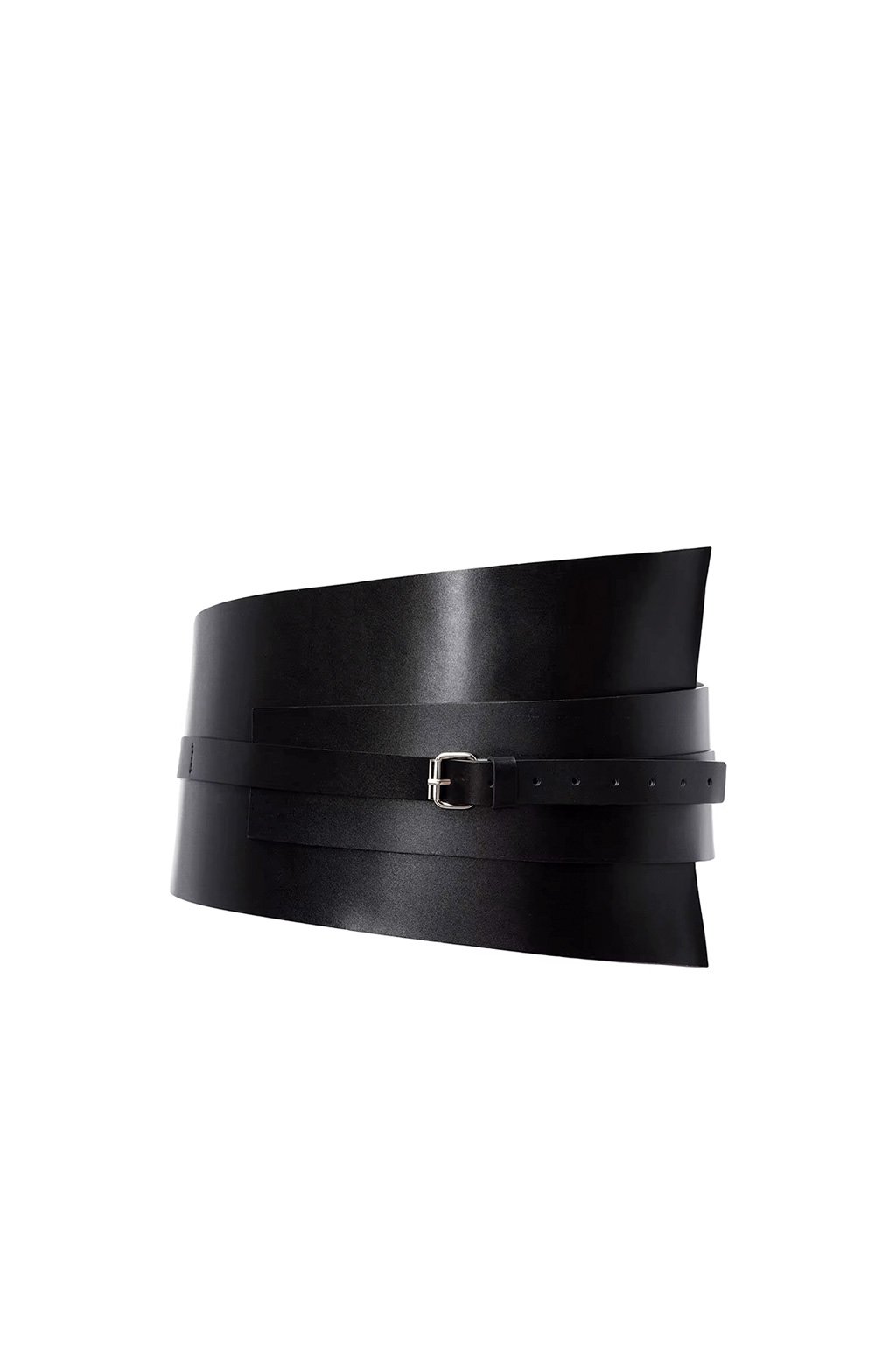 Extra široký asymetrický opasok v imitácii kože v čiernej farbe...
